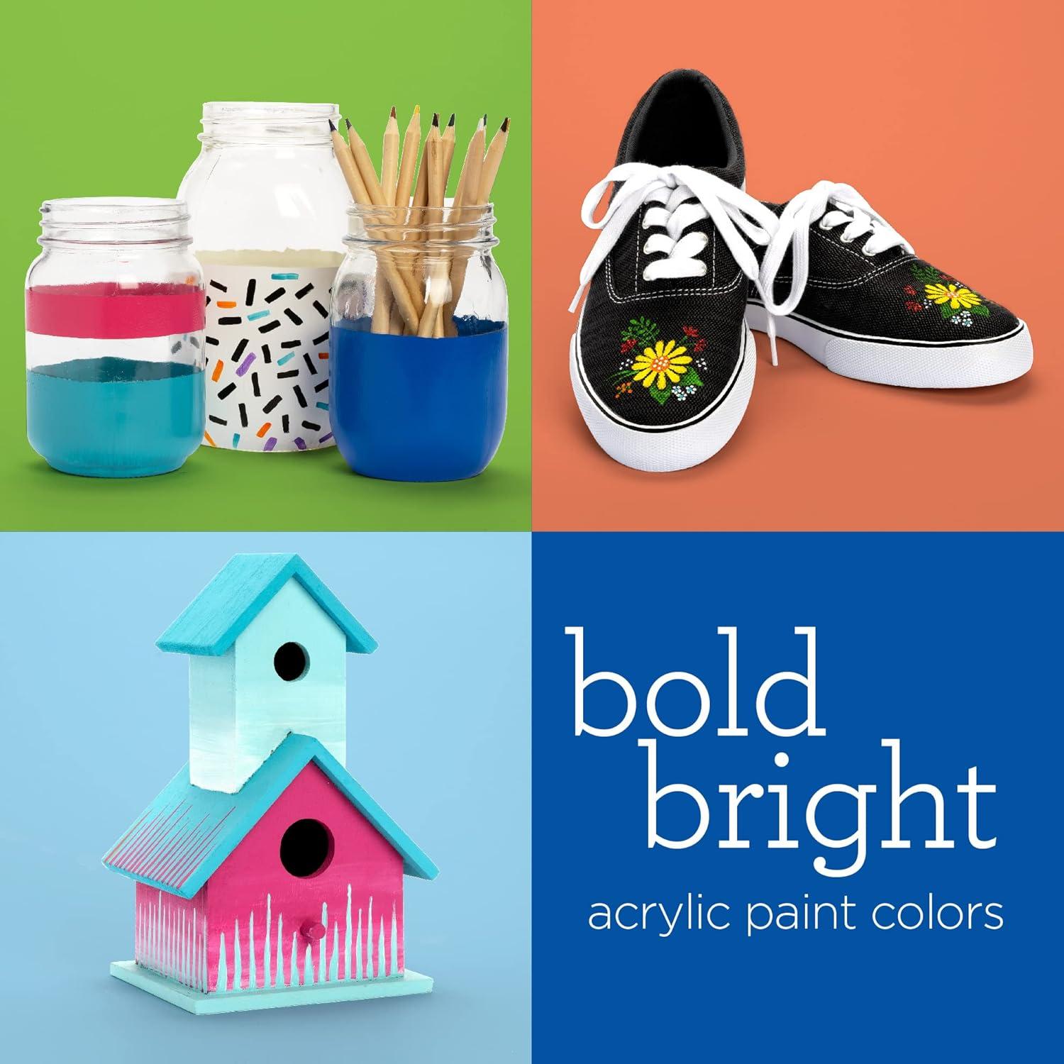 Create whimsical and colorful DIY projects with the Apple Barrel Acrylic Paint Bold and Bright Set. This twelve piece multi-surface acrylic paint set makes your projects pop with bold, bright colors. Apple Barrel Acrylic Paint is a must-have product for any crafter to have on hand for basecoating, stenciling, and more. Make fun and funky projects with your family when you use this easy-to-use, high-quality paint. This versatile acrylic paint is great on a variety of surfaces including terra cotta, paper mache, canvas, wood, plaster, rigid plastic, fabric, concrete, glass, and so much more. This set is perfect for all your indoor and outdoor acrylic craft paint projects and has a simple satin finish. Add the Apple Barrel Acrylic Paint Bold and Bright Set to your art supplies for added durability and fun to your creations!