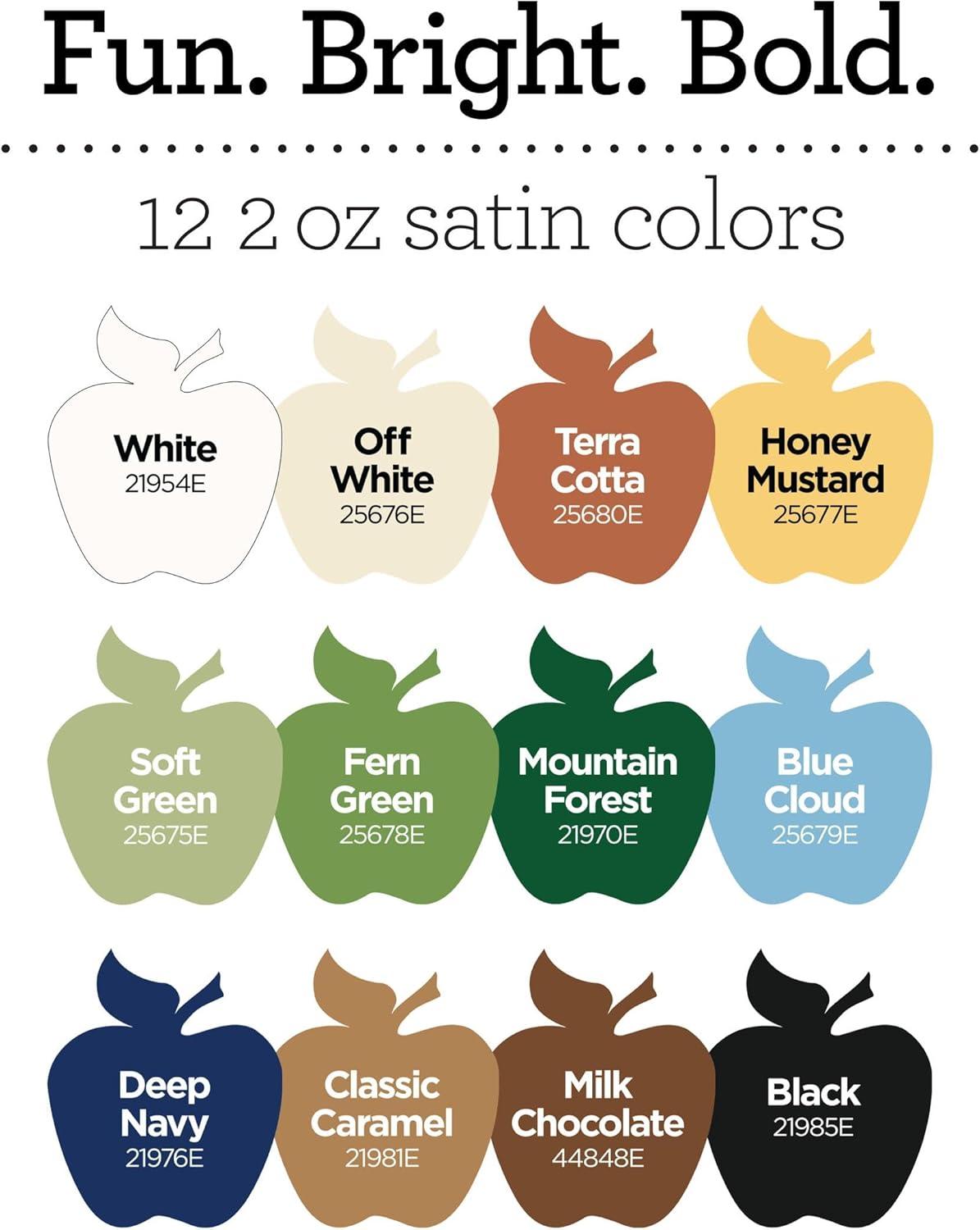 CONVENIENT SIZE & FUN BRIGHT COLORS – This versatile acrylic paint set includes 16 – 2 oz bottles of colorful craft paint. The colors in this kit include: White, Off White, Honey Mustard, Soft Green, Mountain Forest, Fern Green, Black, Classic Caramel, Milk Chocolate, Terra Cotta, Deep Navy, and Blue Cloud.