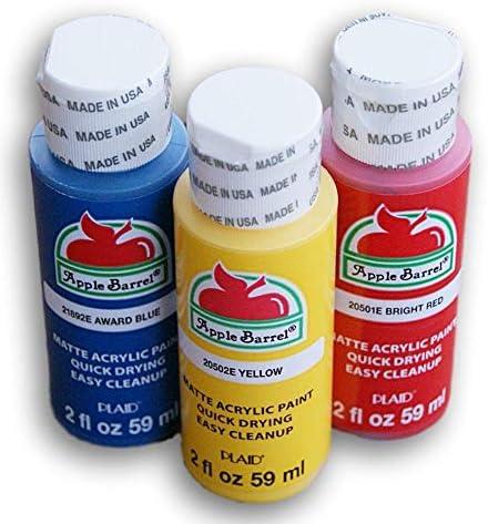 Includes three 2 oz bottles of paint (color names may vary slightly)